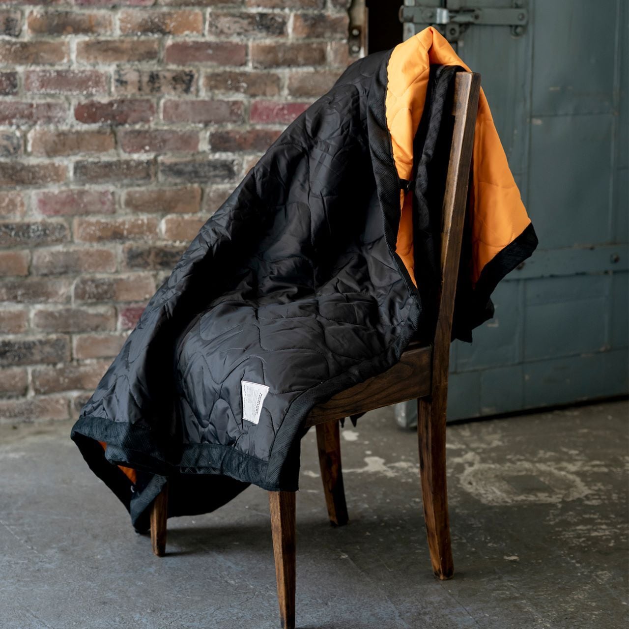 取り外し可能な二枚仕立てのハーフケット。表側のケットは綿入りミリタリーキルティングに裏地にもこだわりカラー素材を使用。裏側のケットは表地に滑らかフランネル素材、裏地はボア素材のあったか仕様。四隅、両サイドに付いたドット釦を外せば二枚のケットとしてシェア使いもできる。シチュエーションを選ばず使える極暖ハーフケット。専用ミルスペック付き。