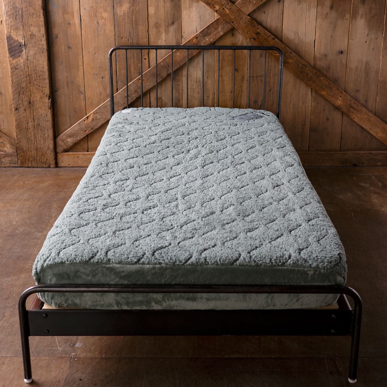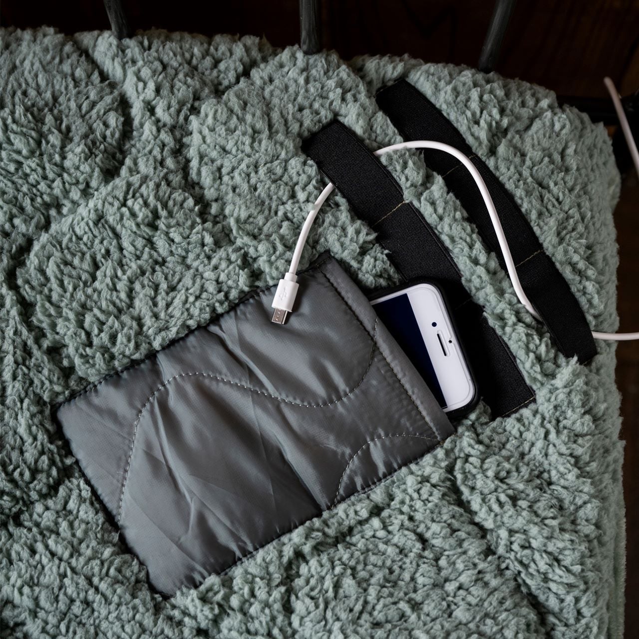 ベッドマットにスッポリ被せるワンタッチボックス装着タイプのベッドパッド。枕元に位置する右上のコーナーには伸縮性のあるベルトループとスマホサイズが収まるキルトポケット付き。寝た後も安心の便利収納として使用可能。表地はあったかボア素材で真冬の就寝時も極暖の寝心地。専用ミルスペック付き。